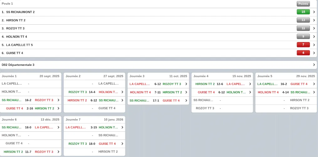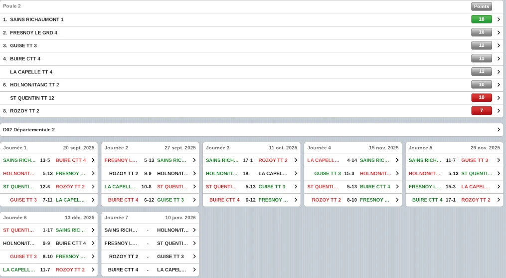 Le score : Holnon TT4 (exempt)