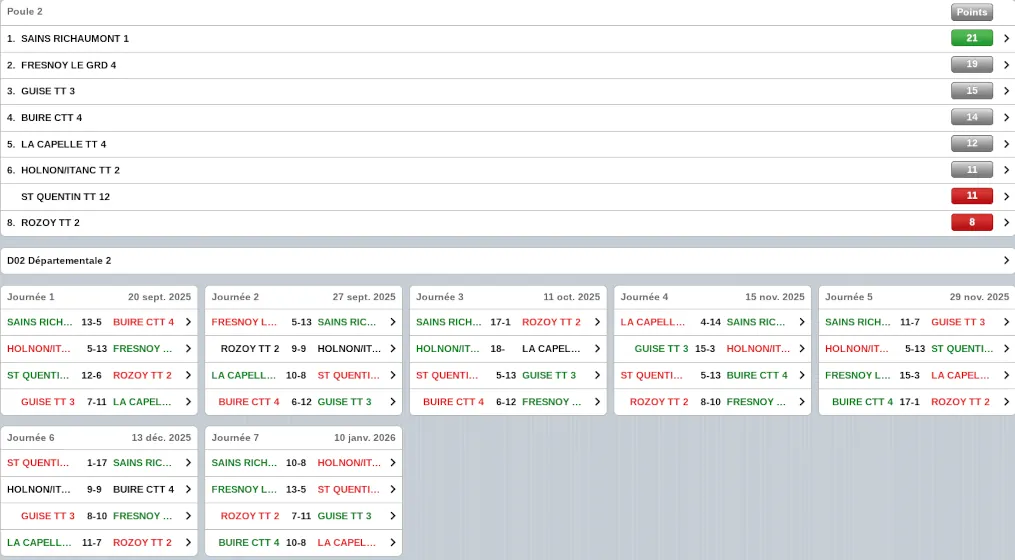 D2-Poule 2-HTT2 : calendrier, classement et déroulement des journées.