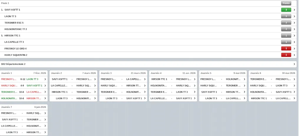 D2-Poule 1-HTT2 : calendrier, classement et déroulement des journées.