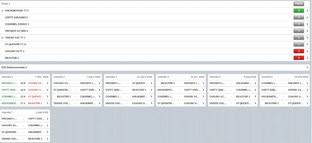 D2-Poule 3-HTT3 : calendrier, classement et déroulement des journées.